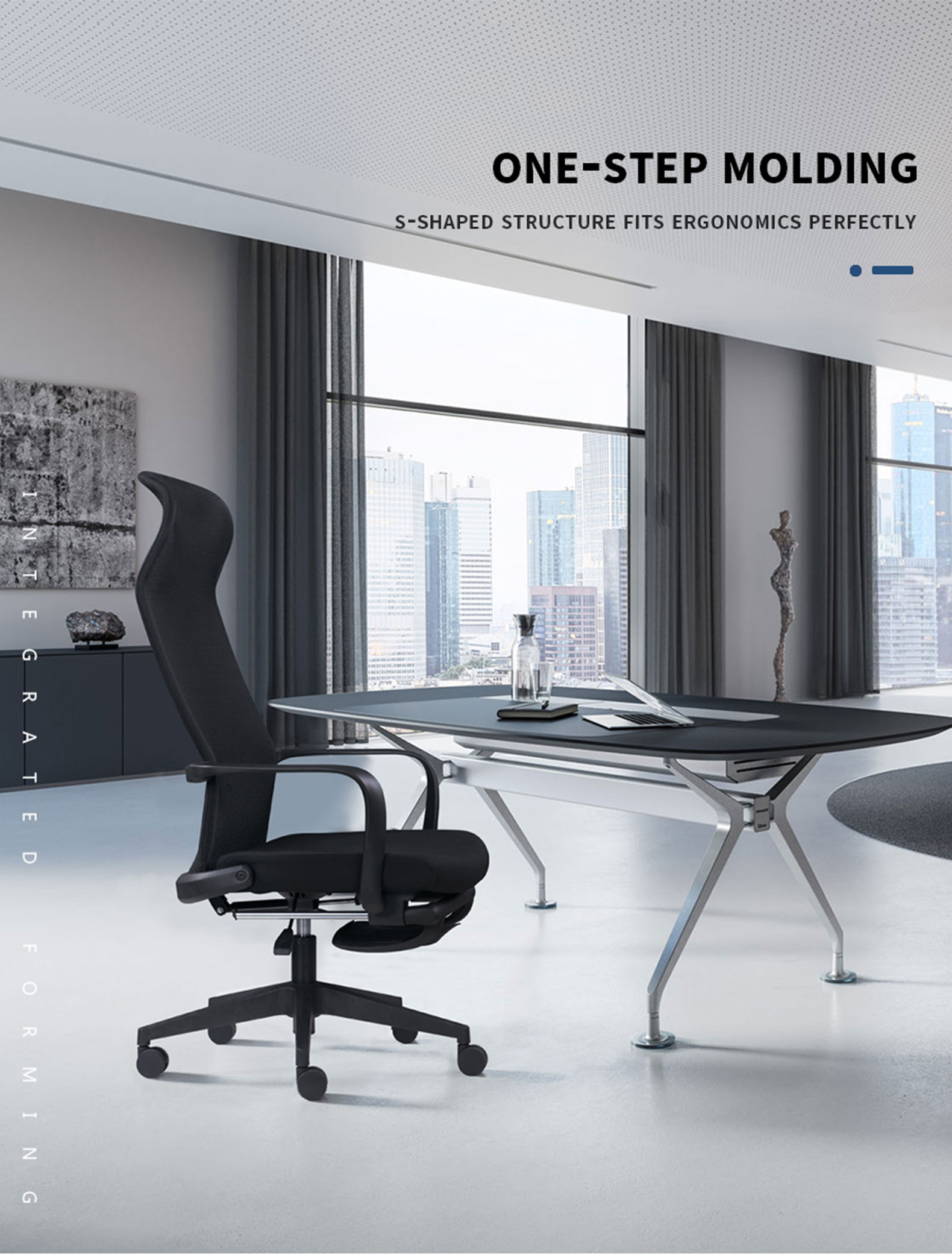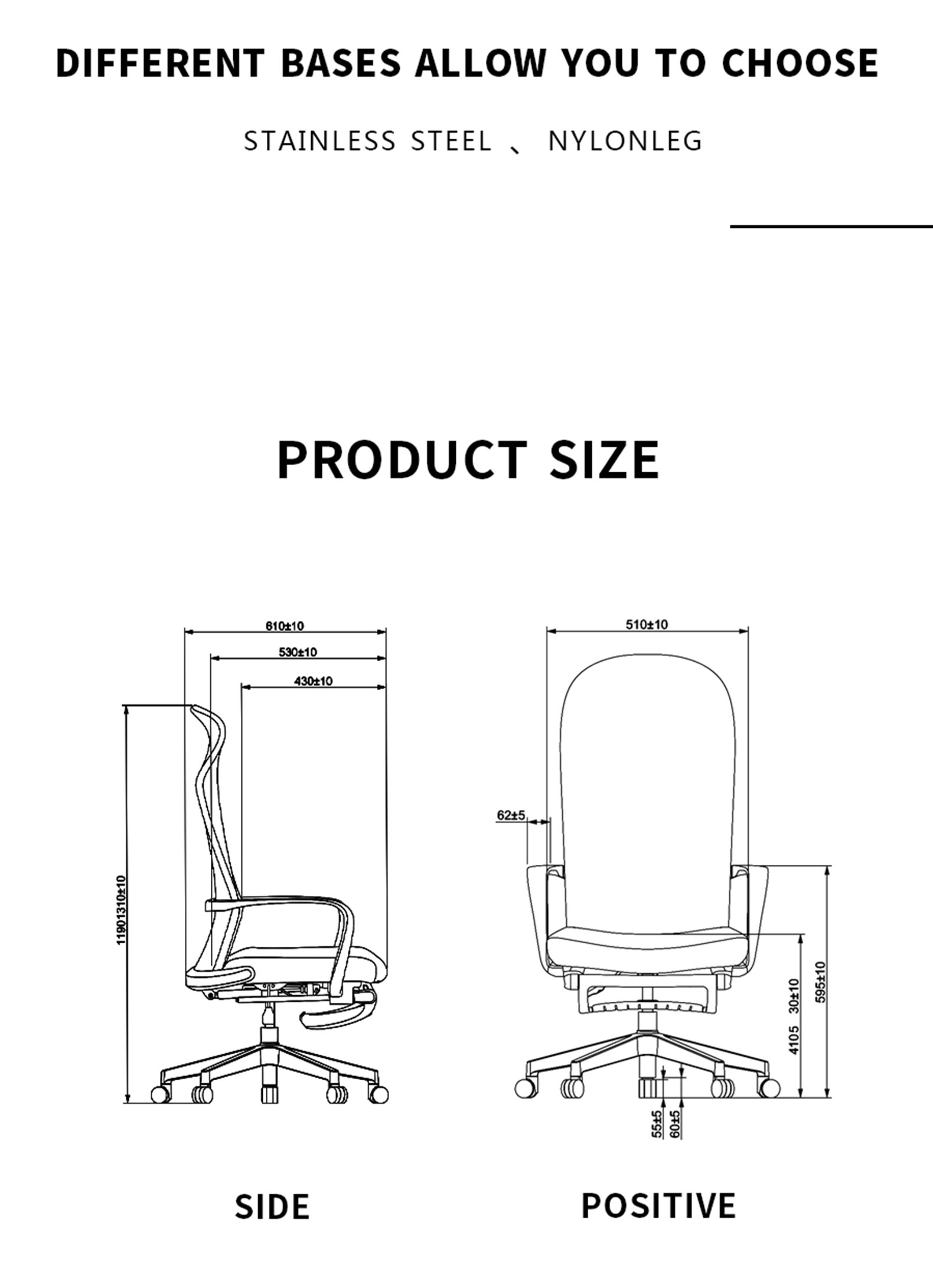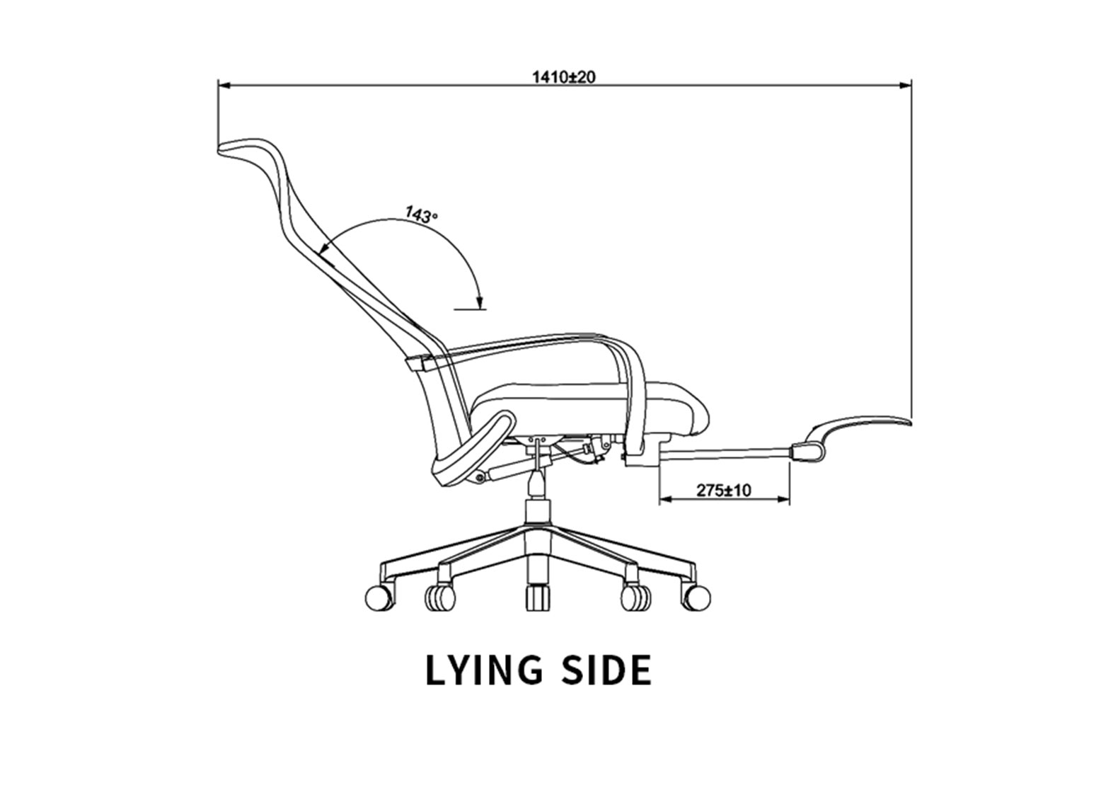 4. Tilting back mechanism with any position locking, 165 degree maximum tilting position